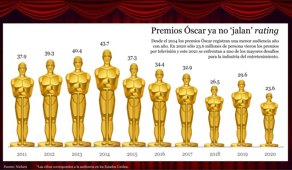 En febrero y marzo los Golden Globe y los Grammys sufrieron grandes descalabros en sus niveles de audiencia, ambos optaron por mostrar a los protagonistas en sus hogares. La audiencia de los primeros cayó de 18.3 a 6.9 millones de personas y los números del premio más importante de la industria musical descendieron de 18.7 a 9.2 millones.