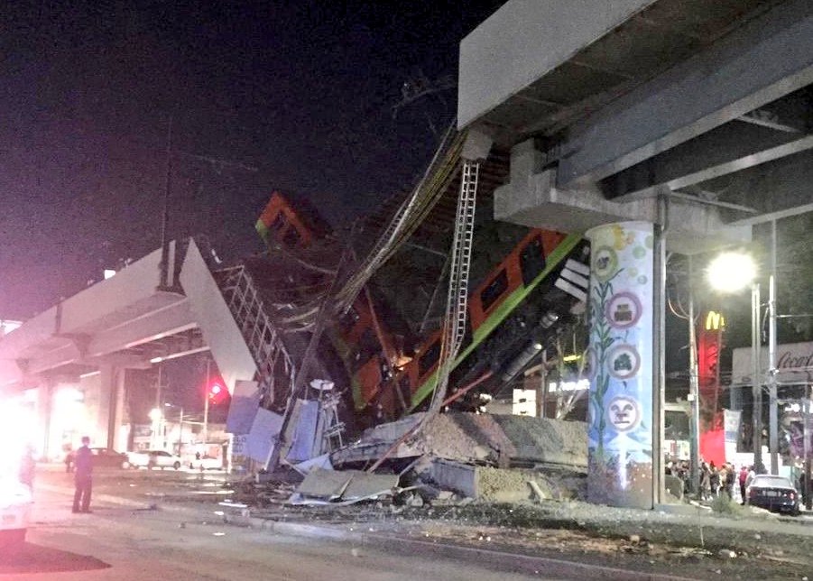 La noche de este lunes 3 de mayo aproximadamente a las 10:00 de la noche colapsó un tramo elevado de la línea 12 del Sistema de Transporte Colectivo (STC) de la Ciudad de México. El accidente ocurrió entre la estación Olivos y Tezonco. El puente, que recorre la Avenida Tláhuac en el sur de la capital, se derrumbó sobre el arroyo vehicular.