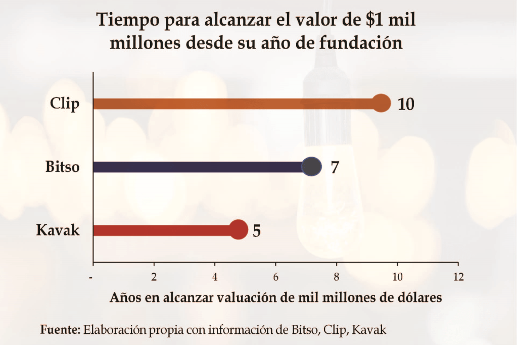 Los otros dos unicornios mexicanos son Kavak y Bitso, con una valuación de 4 y 2.2 mil millones de dólares, respectivamente. De estas 3 empresas, Kavak fue la que menos tardo en alcanzar la valuación de los mil millones a partir de su fundación, ya que fue fundada en 2016 y se sumó a la lista de unicornios el primero de octubre de 2020.