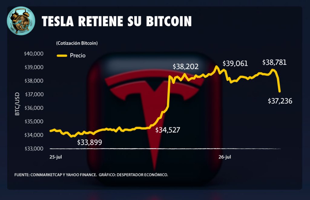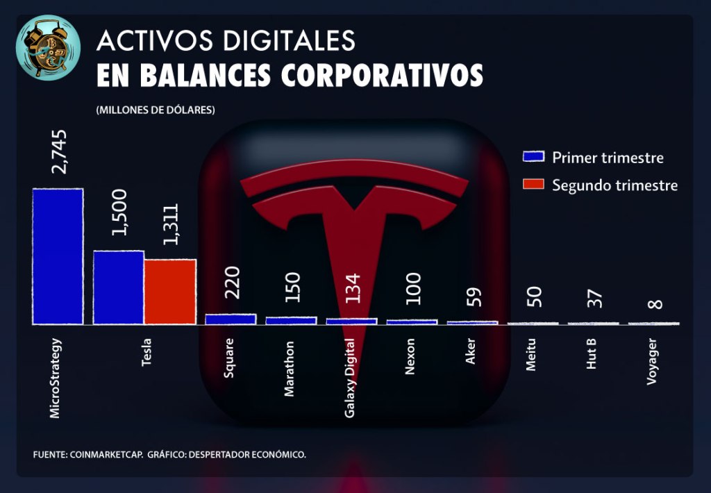 Tesla publicó su segundo informe trimestral, la compañía de Elon Musk no informó sobre nuevas compras o ventas de Bitcoin, actualmente tiene un balance de 1.3 mil millones de dólares en activos digitales. Sin embargo la compañía anuncia un «deterioro relacionado con Bitcoin de $23 millones de dólares”.
