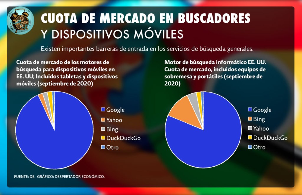 Cabe resaltar que Google mantiene en el mercado estadounidense un predominio abrumador, con el 88% de las búsquedas en Internet ocurriendo a través de sus servicios, así como el 94% de las búsquedas en dispositivos móviles. La compañía está valuada en casi 2 billones de dólares y percibe ganancias anuales superiores a 160,000 millones.