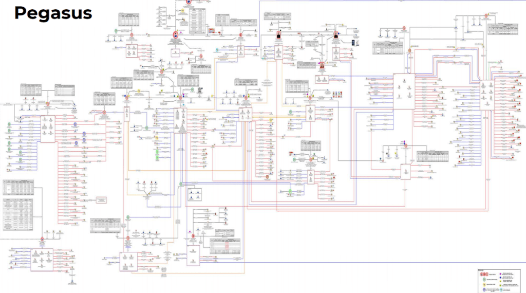 Desde el 2012, distintas dependencias del gobierno federal contratan servicios con empresas fachadas relacionadas a la compra de Pegasus. Las siguientes son algunas de las de las que se identificaron relacionadas con estas operaciones: KBH Track SA de CV, Proyectos y Diseños VME, Grupo Comercial Vicra, Coordinadora de Imagen y Servicios Estratégicos, Artículos Textiles Equipo y Accesorios MV, Constructora del Centro y del Bajío y Comercializadora de Soluciones Integrales Mecale.