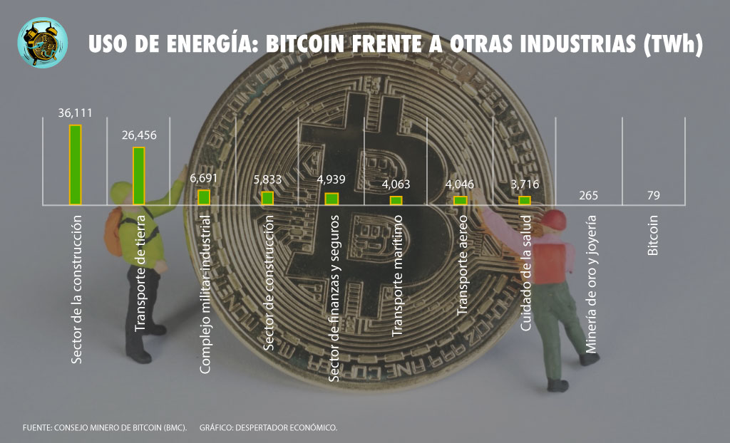 El estudio habla también de otras industrias como la de la construcción (con un uso total de energía de 40.830 TWh y emisiones totales de 12,735 Mt CO2), los servicios médicos (con un consumo energético de 3.716 TWh y emisiones de CO2 de 1,603 Mt) y el del transporte en general (con emisiones resultantes de 8,096 Mt CO2) y en cada caso, el autor determinó que el Bitcoin generaba una fracción de las emisiones que cada uno de estos sectores que no reciben la misma atención y preocupación.