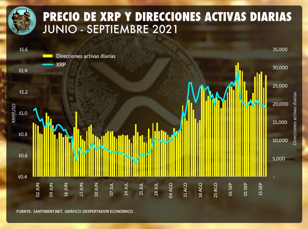 Ante esto, durante los últimos tres meses, la cantidad de direcciones activas de XRP ha incrementado 200% lo cual indica que la confianza en la criptomoneda ha aumentado, incluso en redes sociales se ha llamado a comprar XRP pues las especulaciones de su victoria en la corte llevan a su repunte.