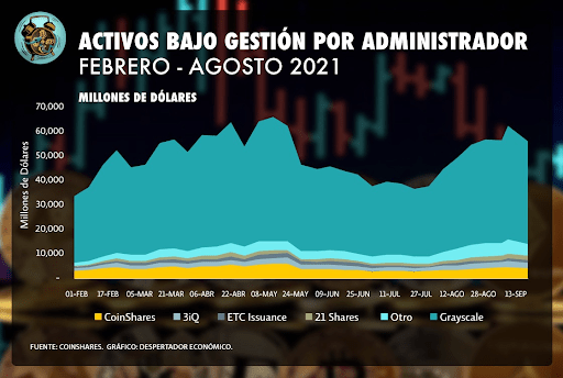 La semana del 01 de octubre los fondos y productos de inversión aumentaron por séptima semana consecutiva sus tenencias netas de activos virtuales, agregando 90 millones de dólares a su portafolio. El valor de los activos virtuales en posesión de los fondos aumentaron 411 millones de dólares.